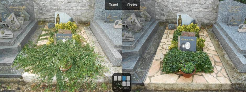 Les sépultures sont nettoyées avec des produits écologiques afin de préserver notre environnement et le monument entretenu. Nous n’utilisons pas de Karcher qui pourrait endommager la pierre et les joints du monument.